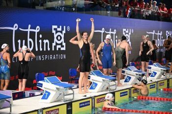 Świetny pierwszy dzień, mamy dwa medale, a my jeszcze rekord Polski. Wszystkie zmiany były poniżej dwudziestu jeden sekund, a to jest naprawdę bardzo szybkie pływanie. Myślę, że to nas napędzi na kolejne dni. Sezon letni miałem wspaniały i mam nadzieję, że zimowy też będzie bardzo dobry. Fantastycznie czujemy się w Lublinie, atmosfera jest cudowna – mówi Kamil Sieradzki, który razem z Piotrem Ludwiczakiem,